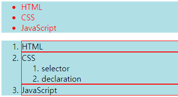 <li id="idsel" class="classsel" style="font-size: 10px; color:powderblue">CSS</li>