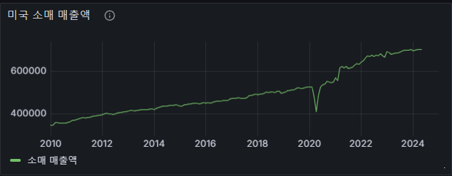 - 미국인의 소비 의욕을 나타내는 수치이며, 소매 매출액이 호조세일 때 미국 경제가 호황임을 의미.