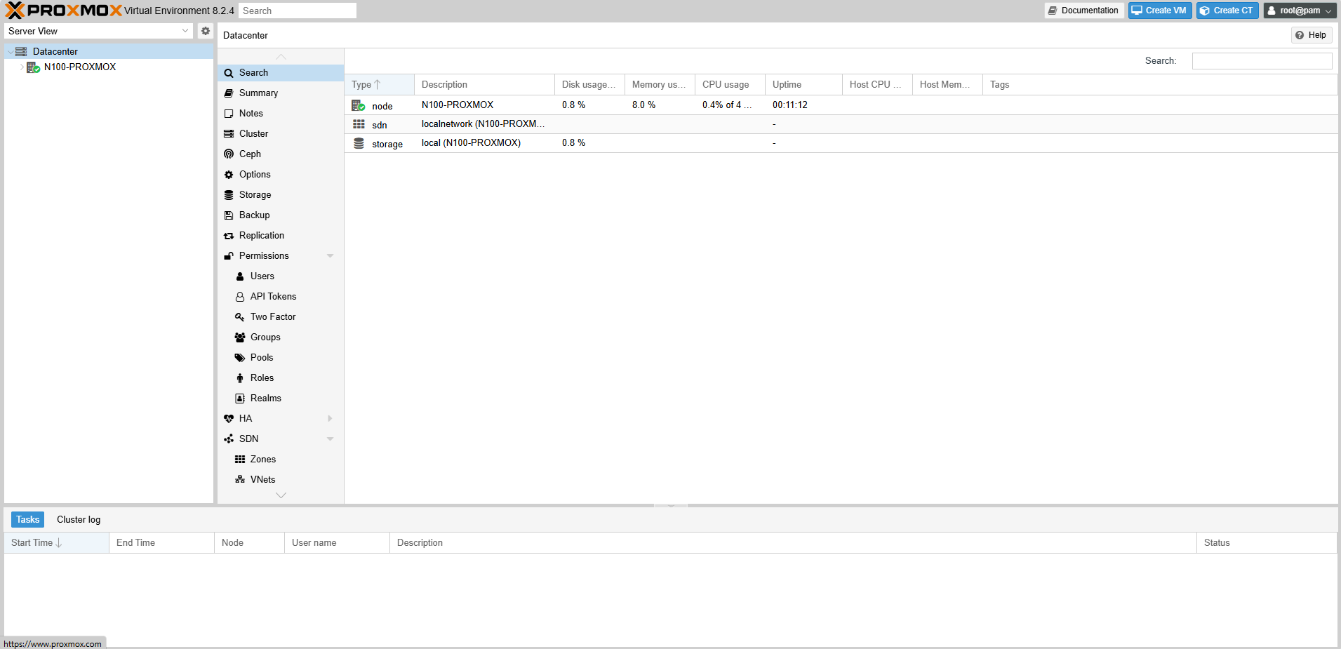 호스트 네임은 n100-proxmox 로 해보겠습니다.