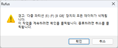 저는 예전에 Windows 설치용으로 USB 를 만들어서 그런지 "E: F:" 다중 파티션 장치로 뜨고 있습니다.
