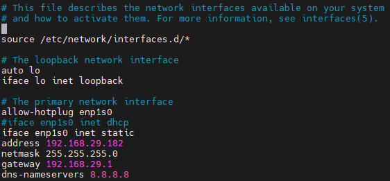 # vi /etc/network/interfaces