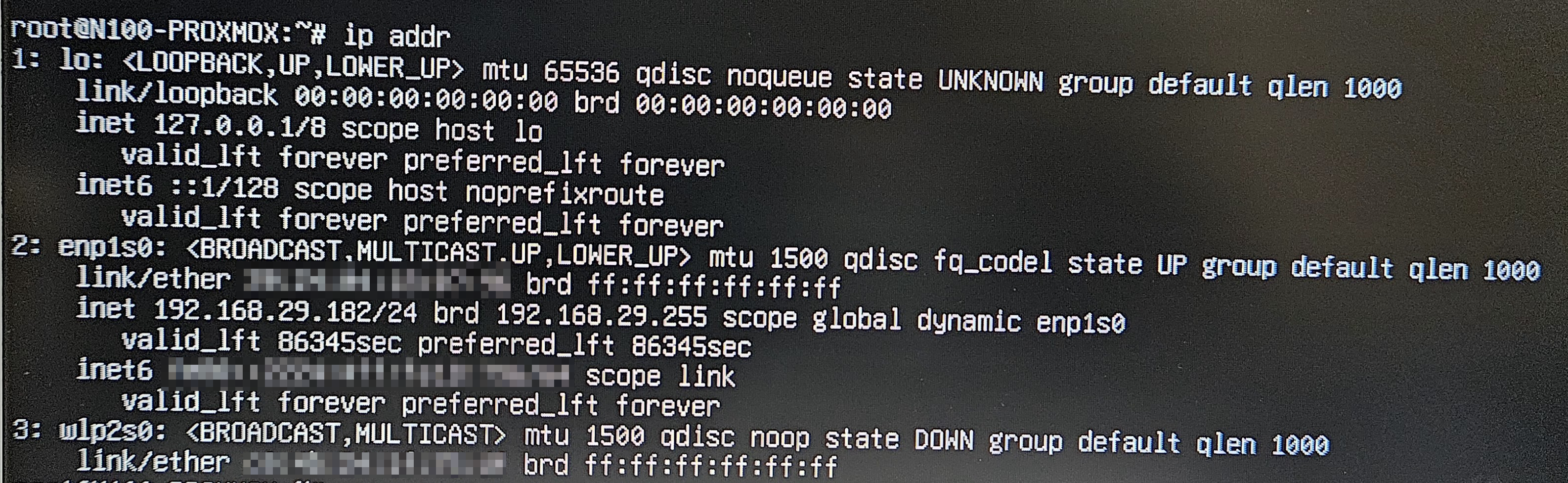 제 Chattery T9 의 경우 Realtek 8111E 를 사용 중입니다. 해당 드라이버는 Proxmox 8 버전 설치 시 이슈가 있다고 하니 뒷부분에서 다시 다루도록 하겠습니다. 일단 유선랜(enp1s0)과 무선랜(wlp2s0) 둘 다 잘 잡히세요.