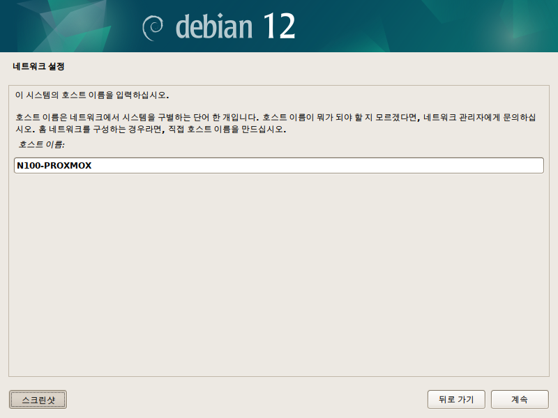 호스트 네임은 n100-proxmox 로 해보겠습니다.